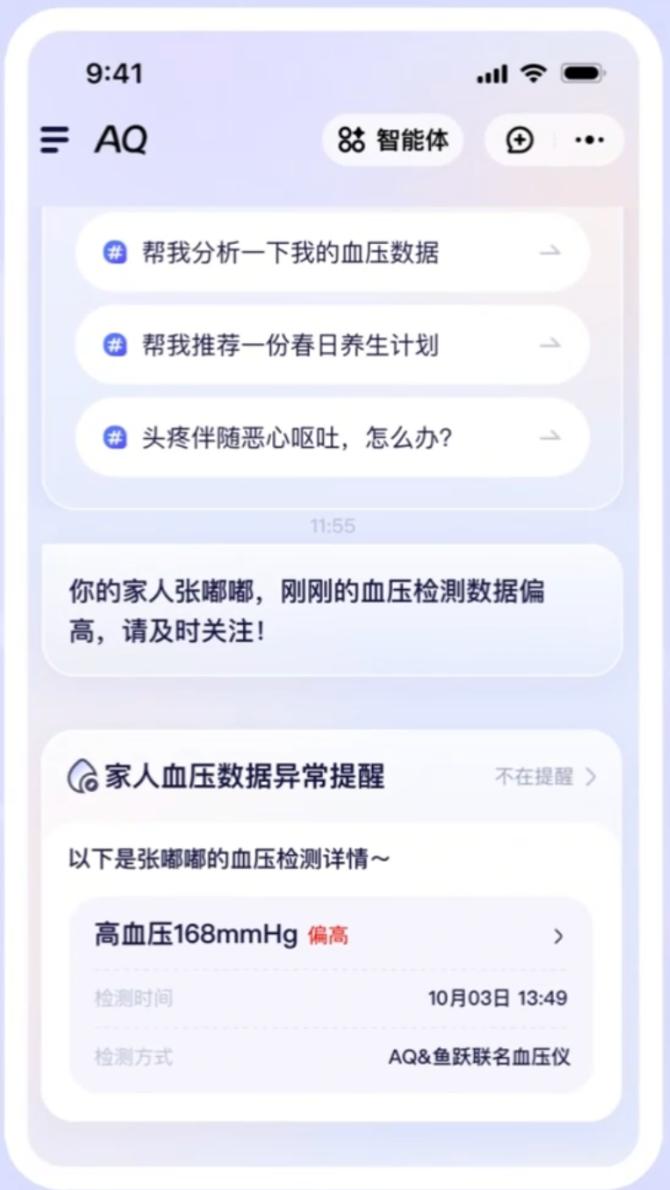 医生团队记得一个特殊的求助:一位老人,在两个月里与AQ对话千余次,反复诉说着“每晚只能睡1到2小时”的痛苦。